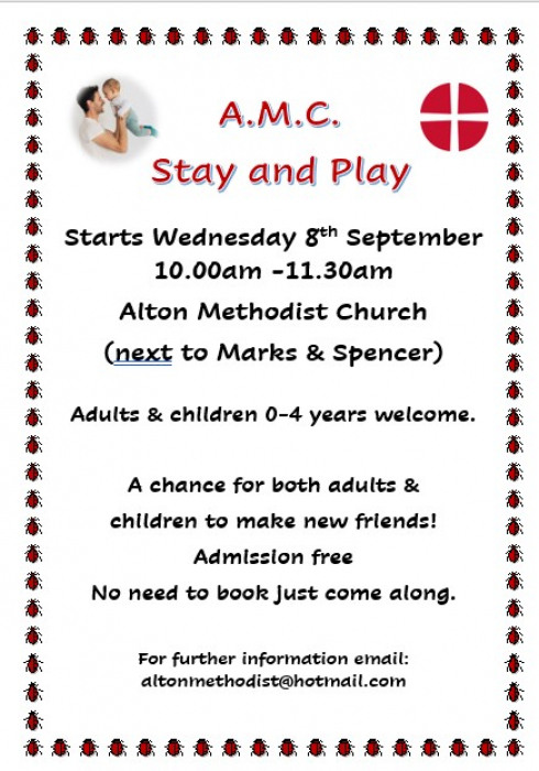 Stay & Play is a parent and toddler group running each Wednesday during school term time in Alton Methodist Church.